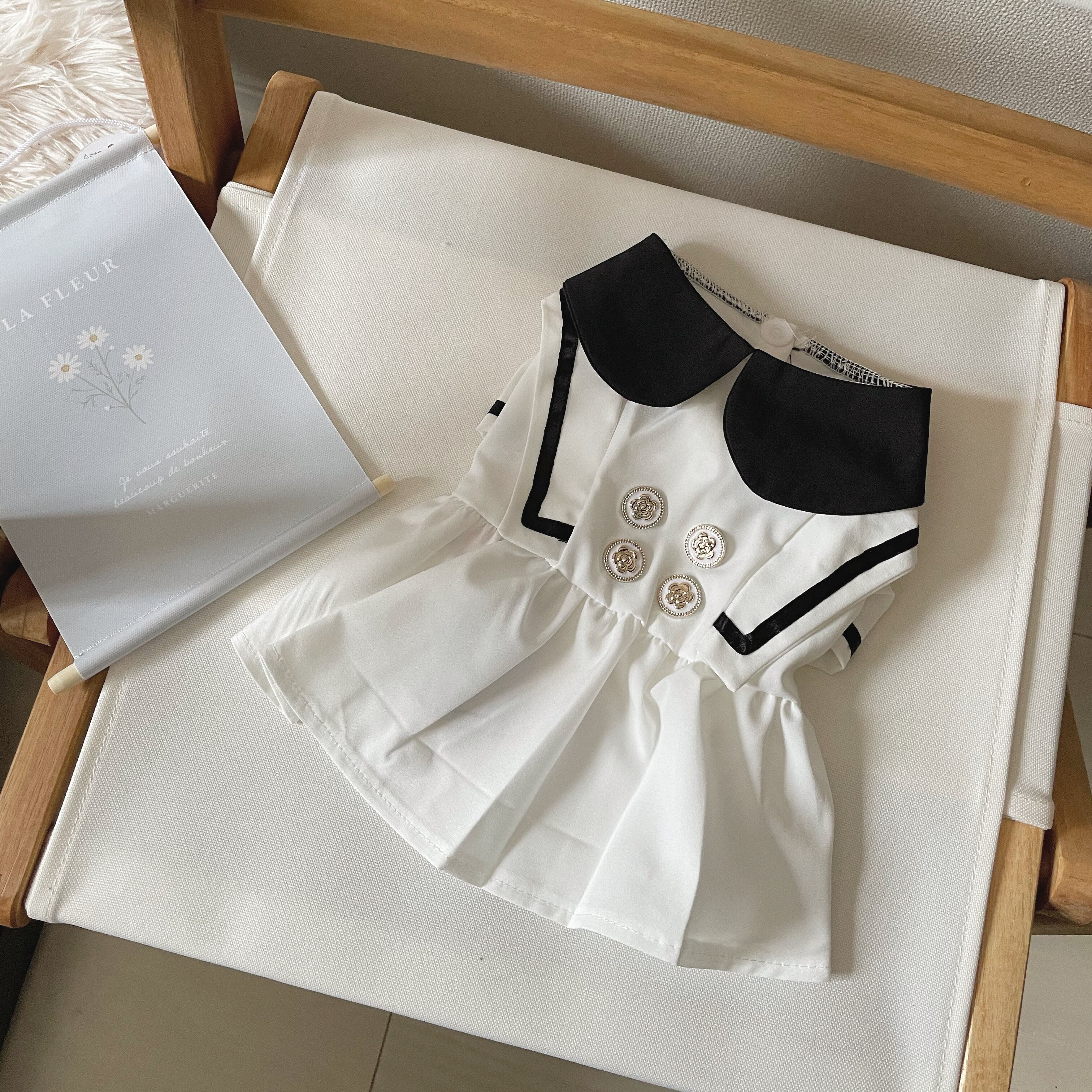バイカラーセーラーワンピース ◎犬服マリン